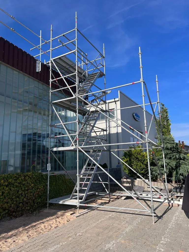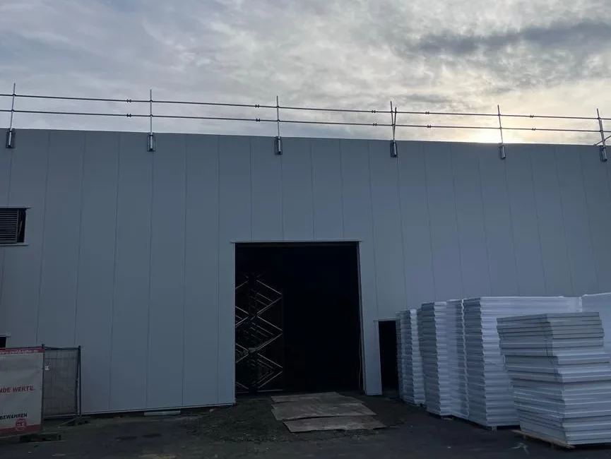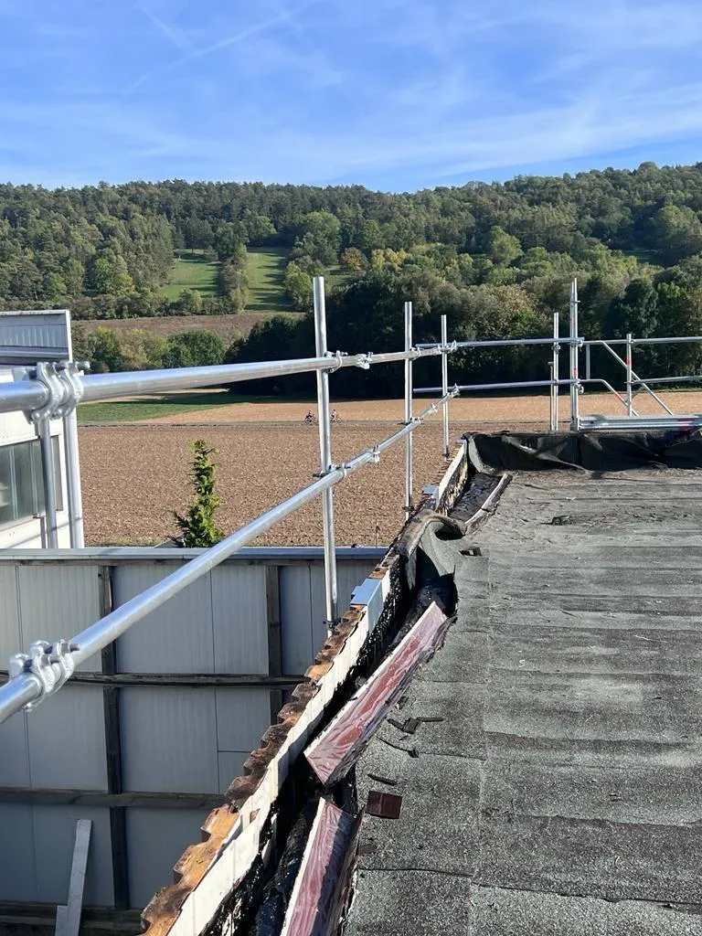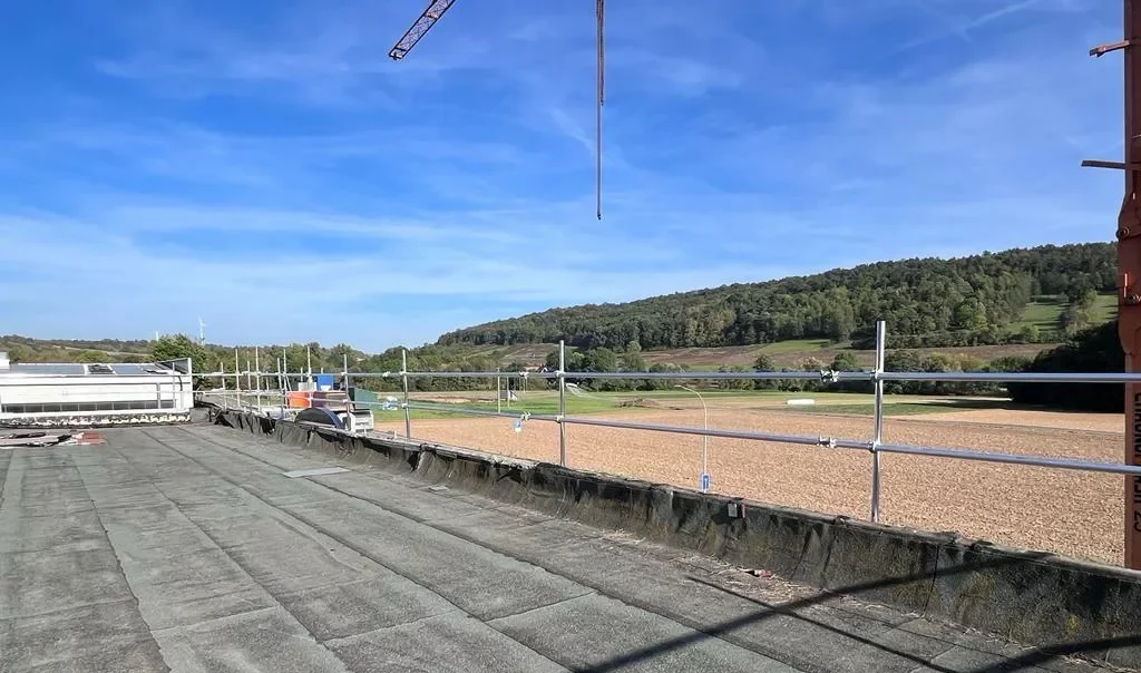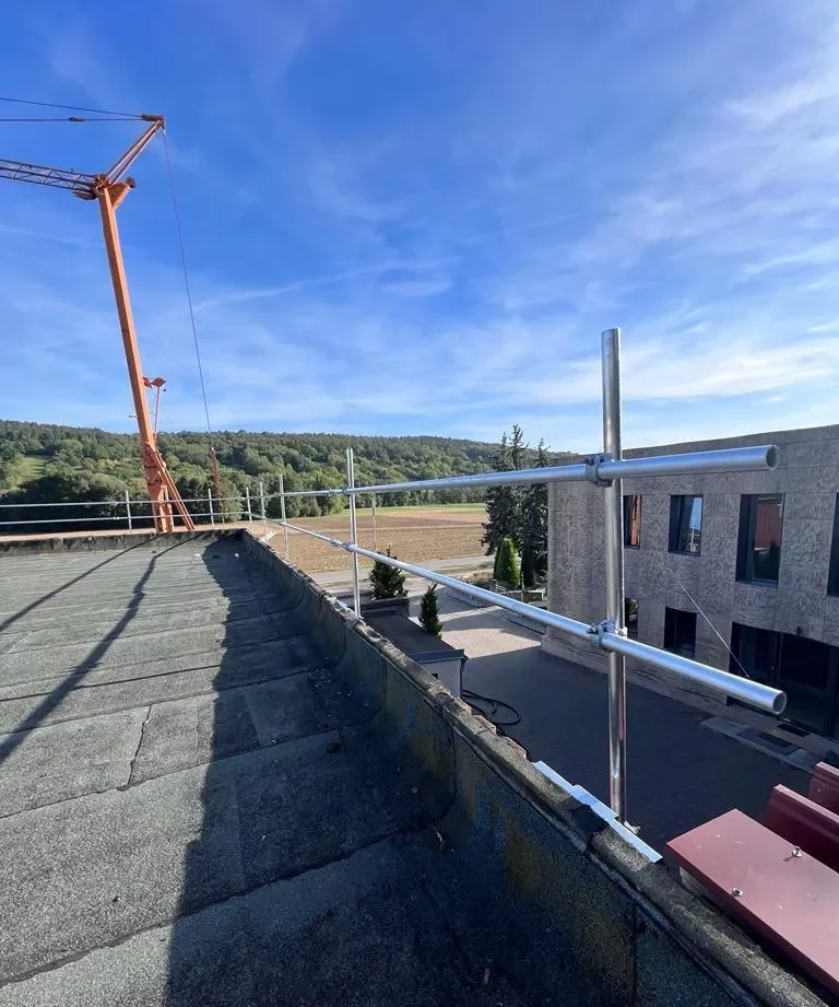 An mehreren Industriegebäuden in Röttingen wurden Dachrandsicherungen der Firma Hakos und ein Treppenturm installiert.