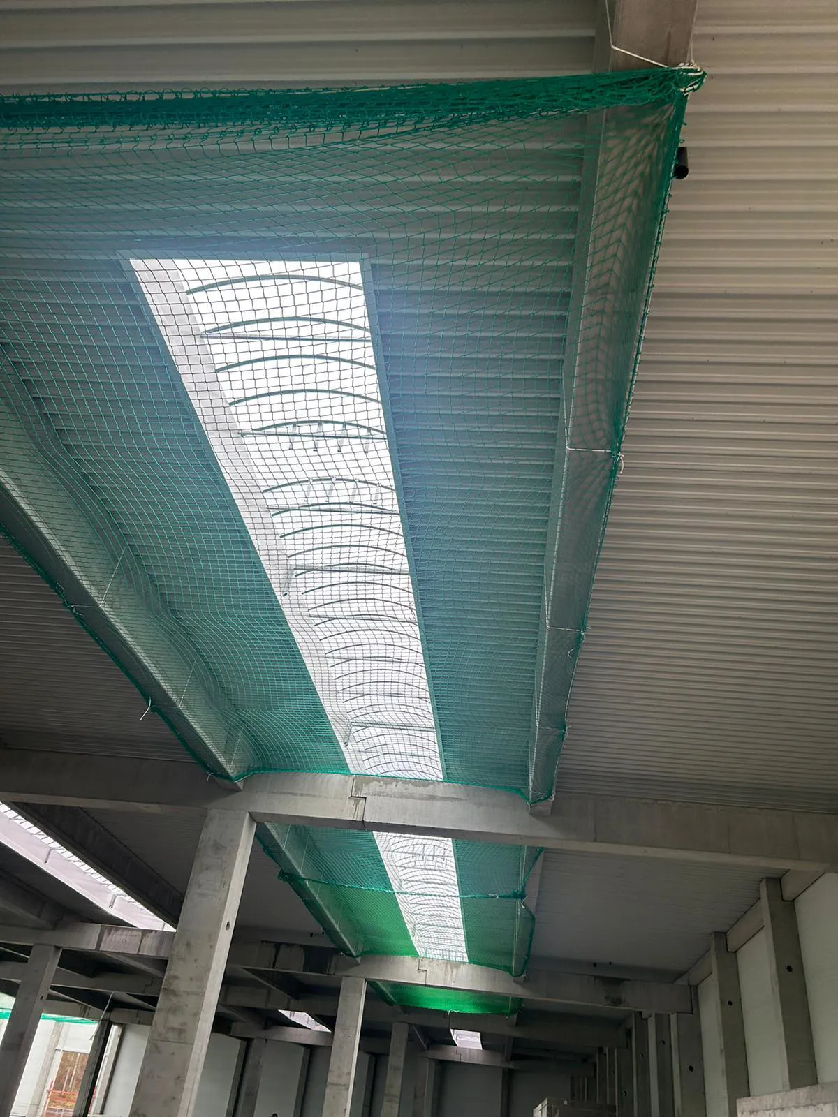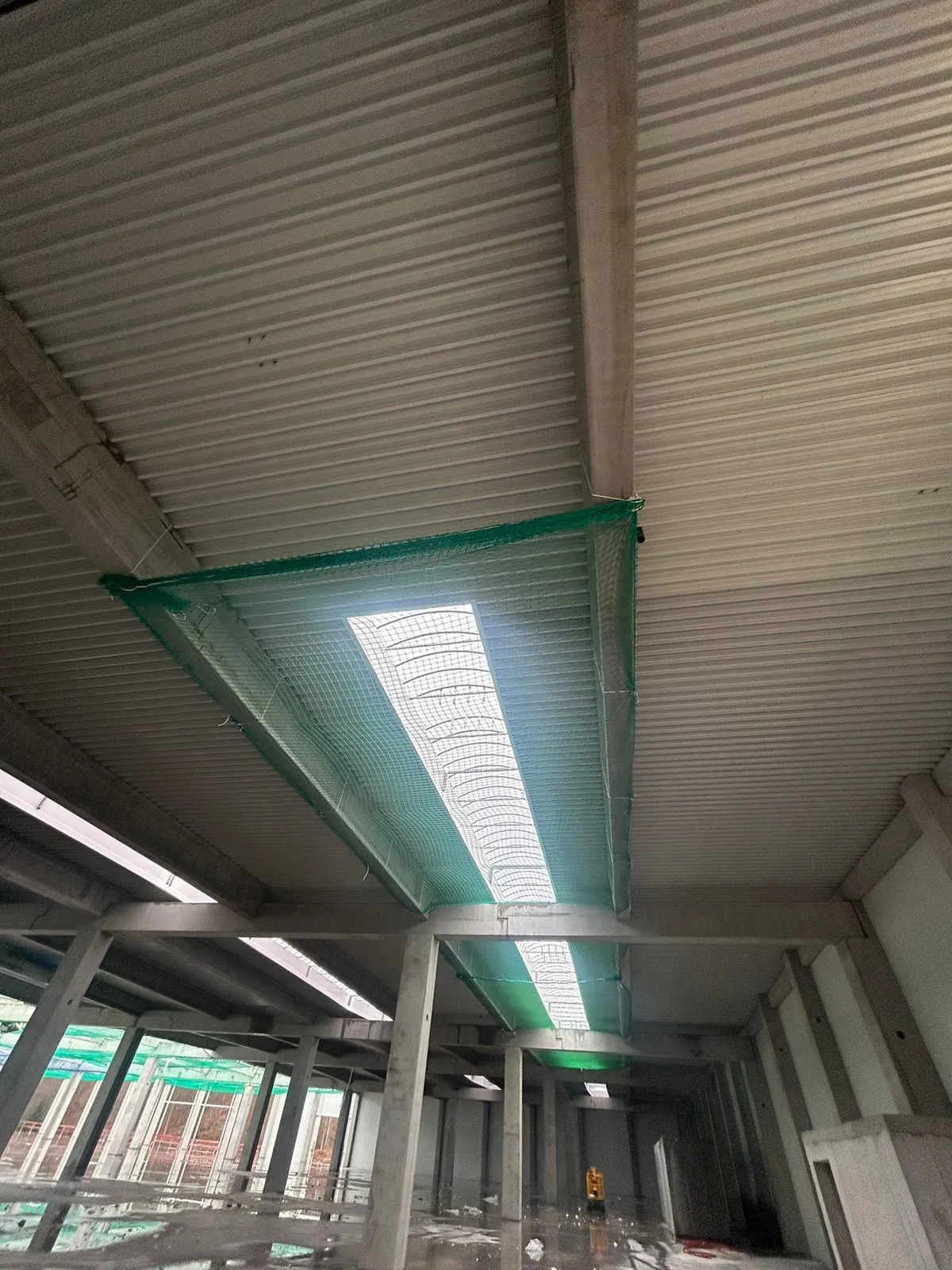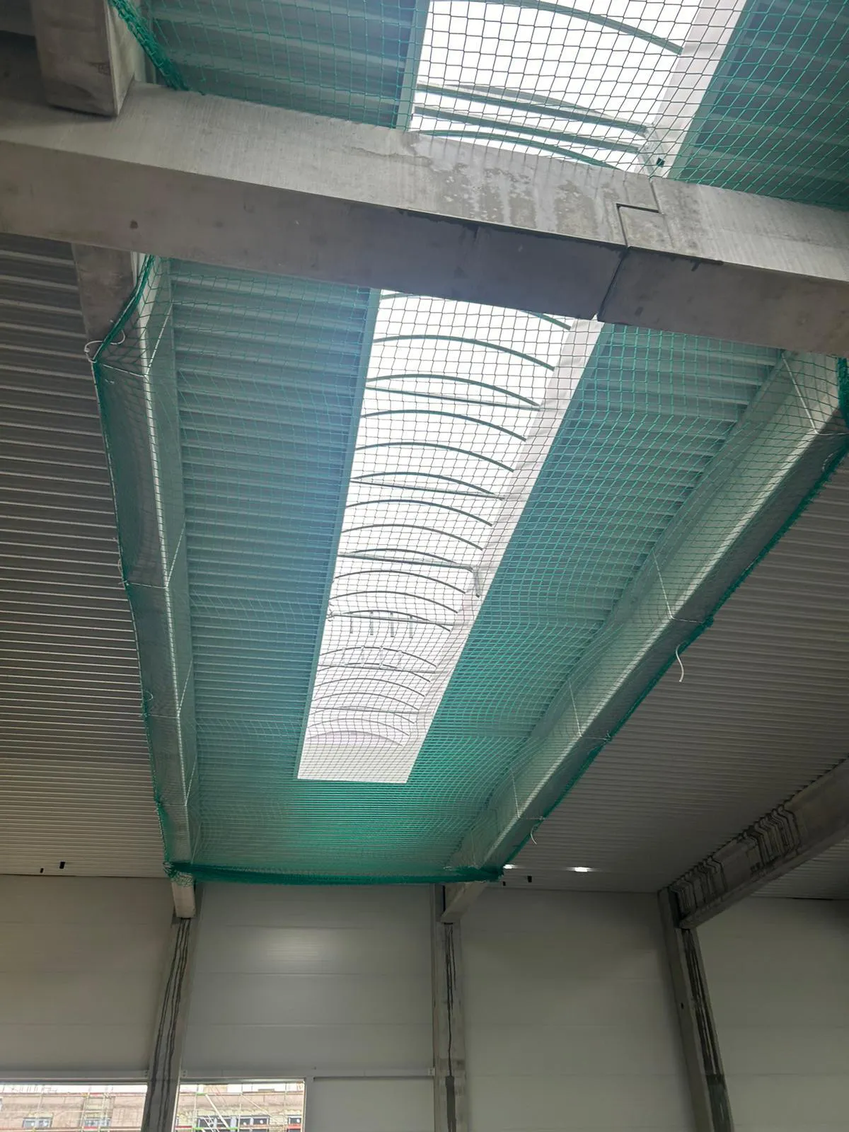In einem Industriegebäude in Calw wurden große Lichtbänder mit Auffangnetzen gesichert.