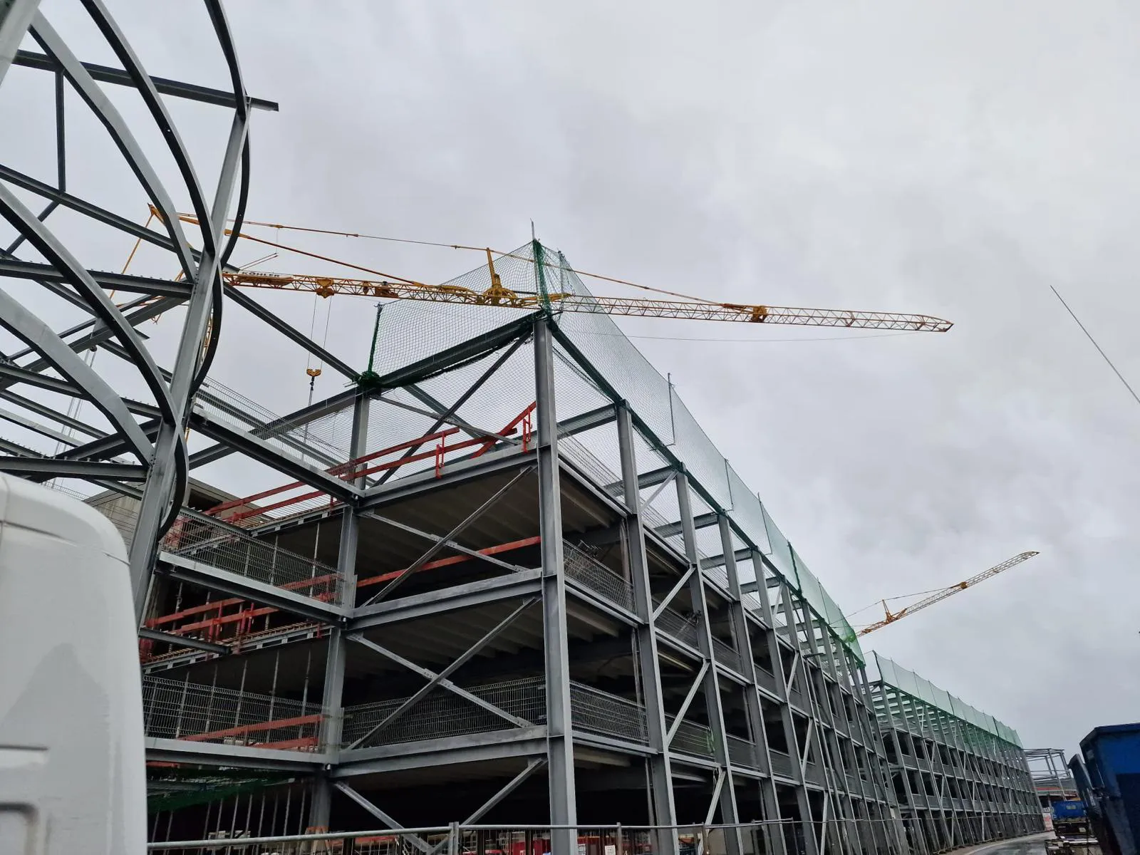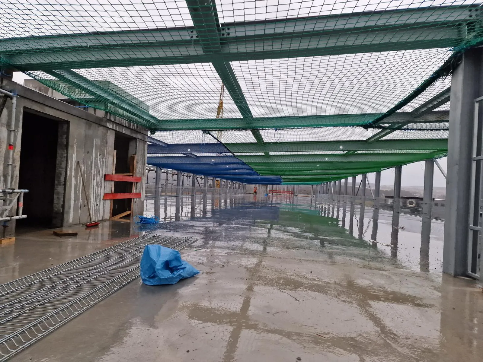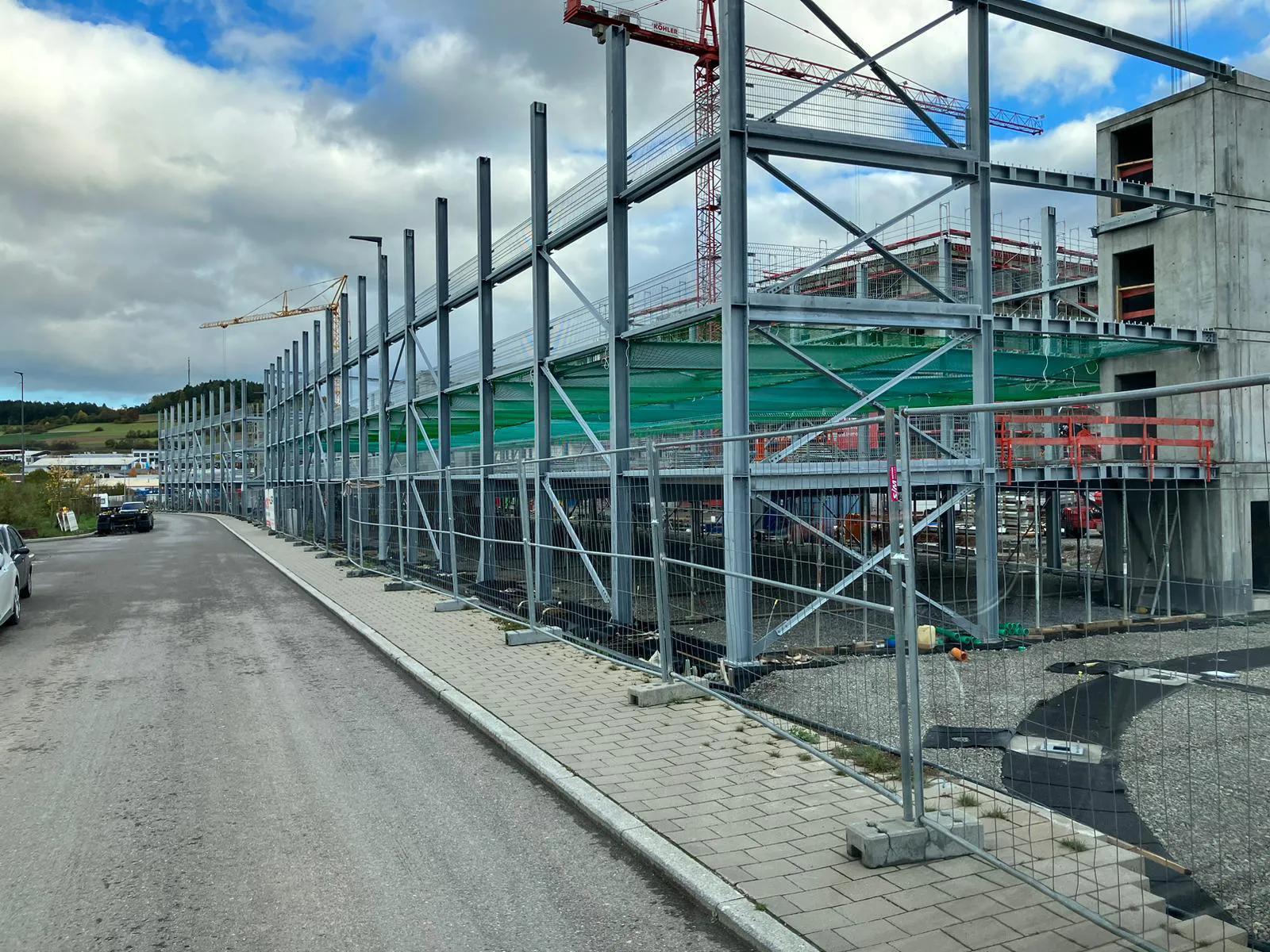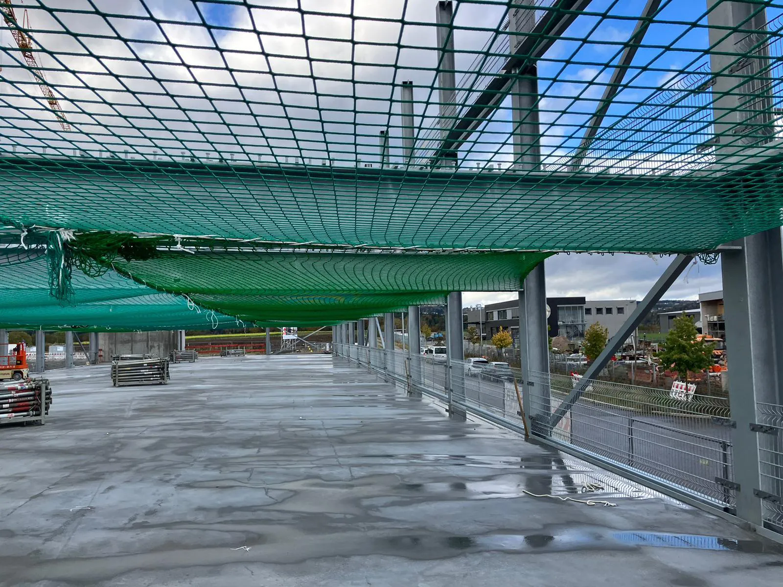 Beim Neubau eines Parkhauses in Calw wurden von uns Personenauffangnetze und Dachrandsicherungen in Form von Netzen installiert.