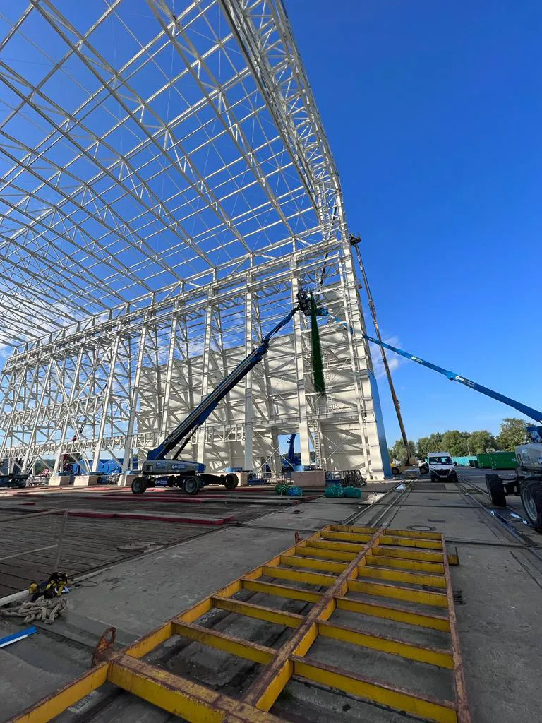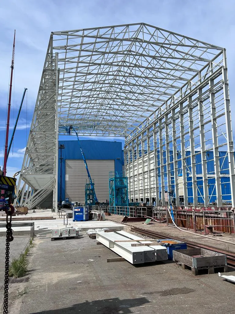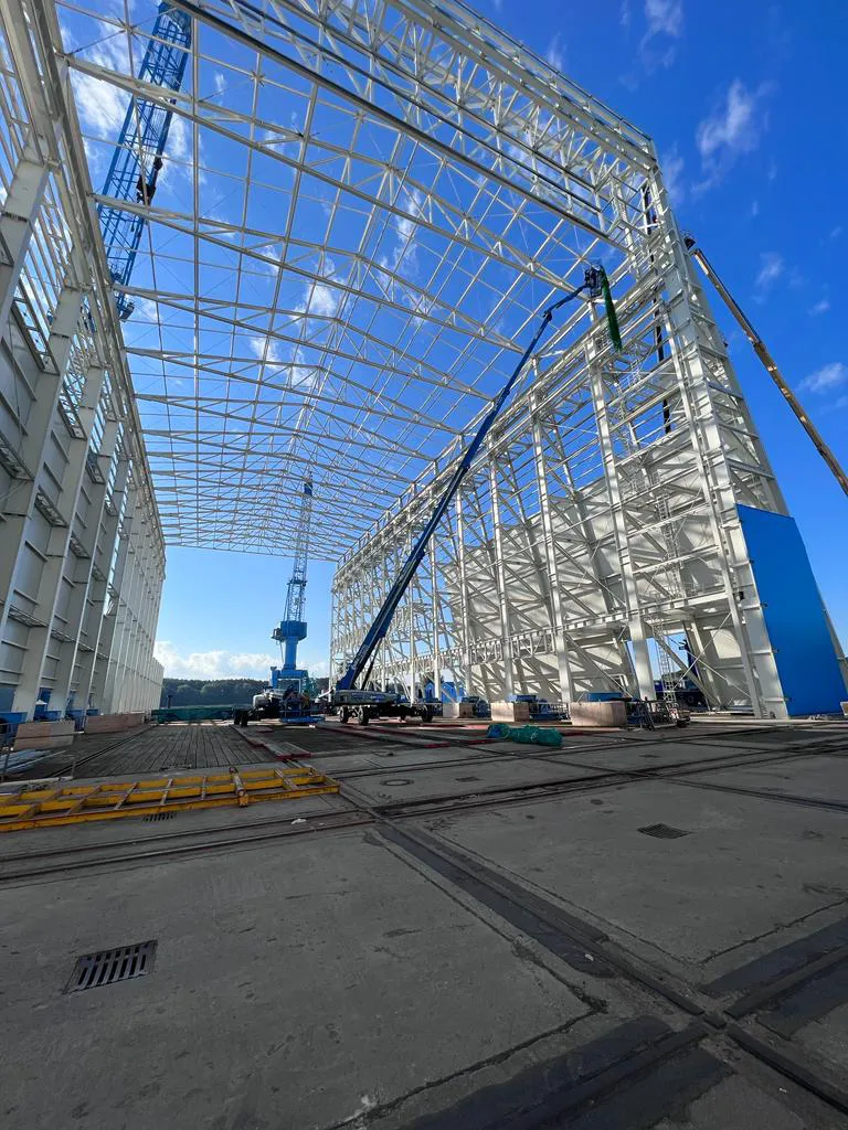 In einer Werft wurden Personenauffangnetze am Trockendock der großen industriellen Anlage angebracht.